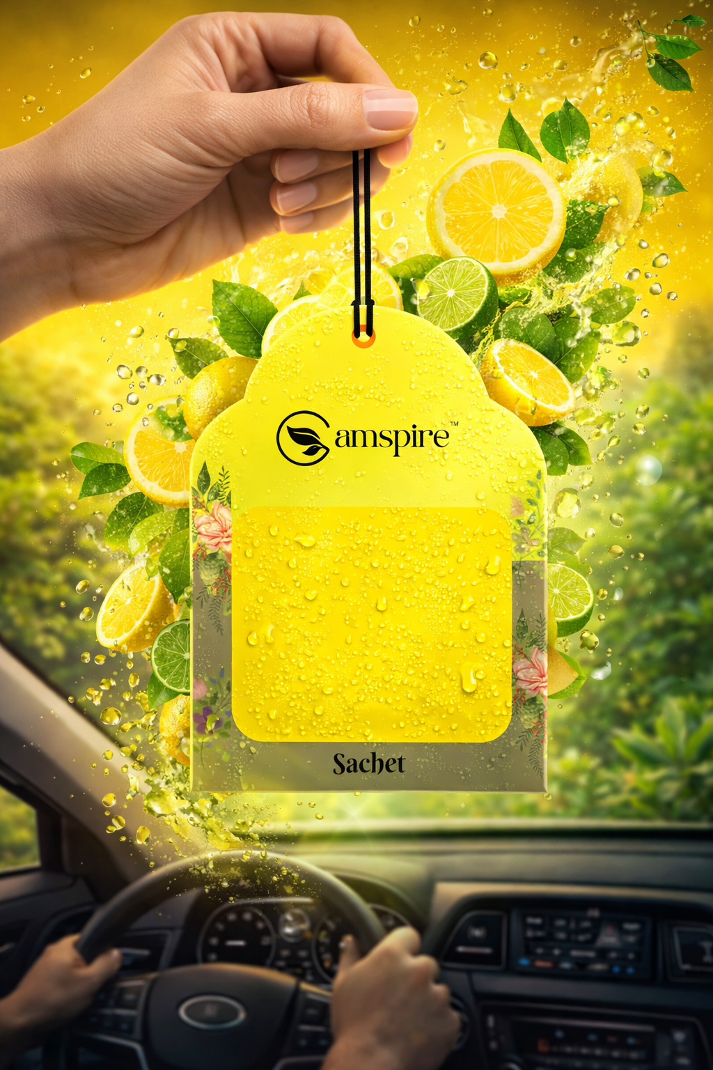 Camspire Camphor Sachet Hanging Car Perfume -Lemon Zest | Next-Gen Camphor Diffusion Based Car Air Freshener | Car Freshener | Last Up to 45 Day